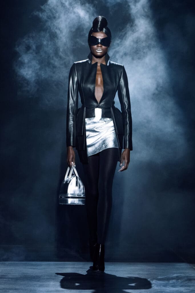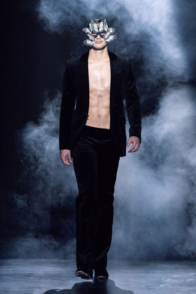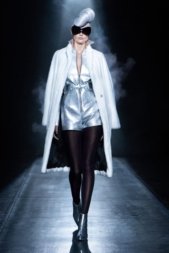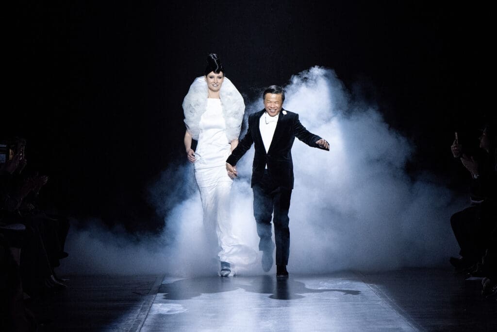 On February 11, 2026, Zang Toi and his fashion warriors strutted their stuff down a runway at the Park Avenue Christian Church in Manhattan. Toi presented his Grand Galactic Galaxy Collection with a futuristic flair, featuring fog clouds, black leather, luxurious furs, and sparkling fabrics, all in a palette of black, silver, white, and cobalt blue, and accented with exclamation points of silver lipstick and jellyroll hair.