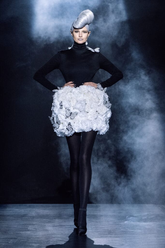 The line was filled with statement pieces that were exquisitely hand-crafted in Zang’s atelier. One notable piece was the cityscape cape featuring intergalactic vessels. The showstopper was a white tulle gown embellished with butterflies.
